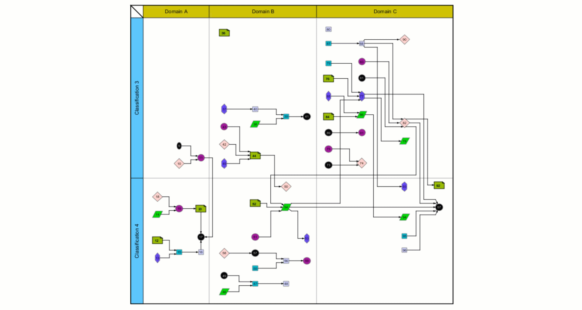 Looking at data as a graph can provide some powerful insights & our two dimensional swim lane multiplies this by allowing you to use any two attributes to plot along x and y axis, so factoring in the sequencing of dependences into your decision making