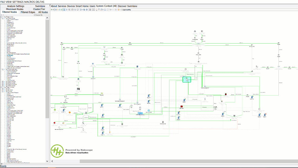 If the ripple function is used multiple times different colours will highlight the ripple effect. Where colours ripples intersect a new colour is used to highlight the common nodes between ripples